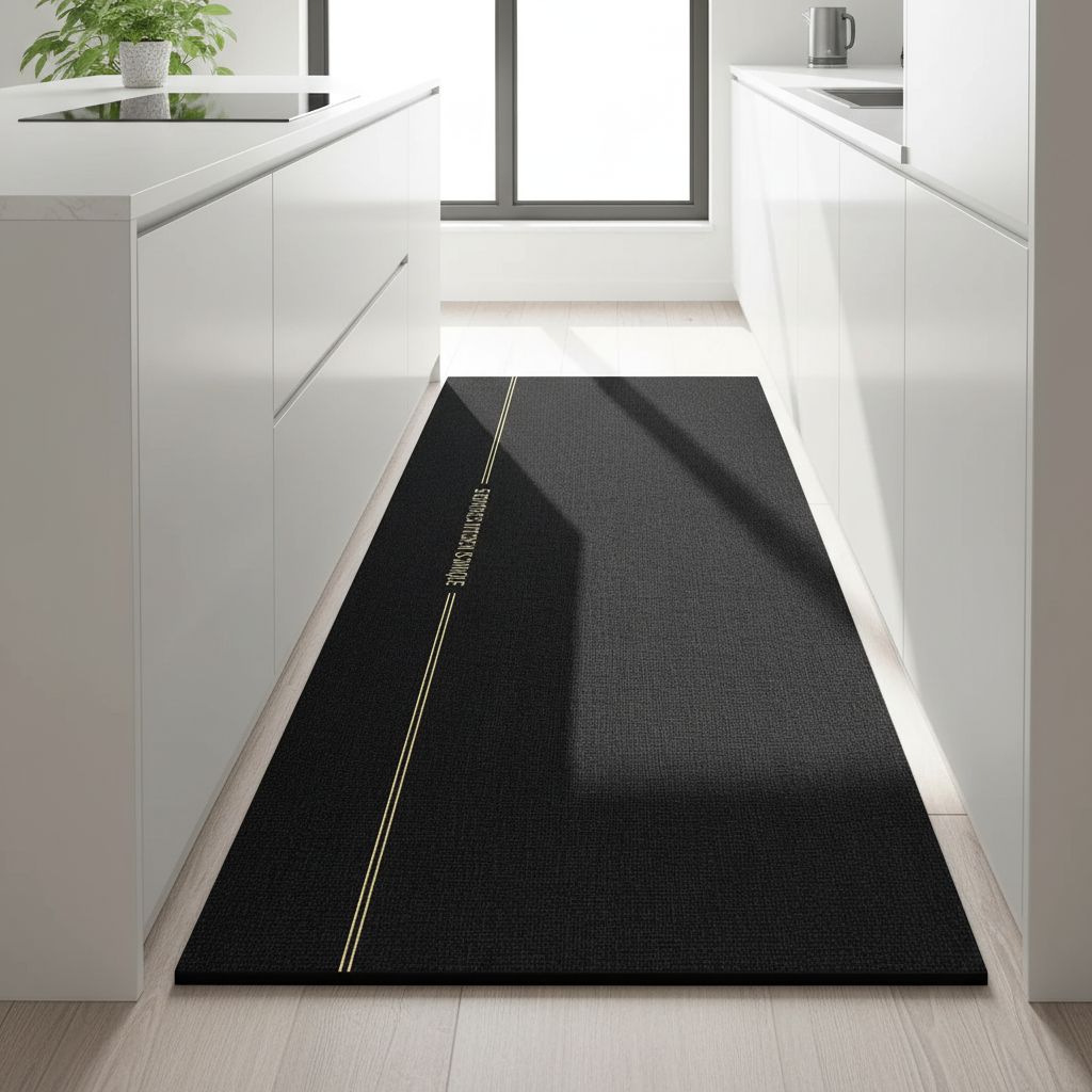 Optimisez le style et la sécurité de votre cuisine avec notre tapis noir minimaliste antidérapant.