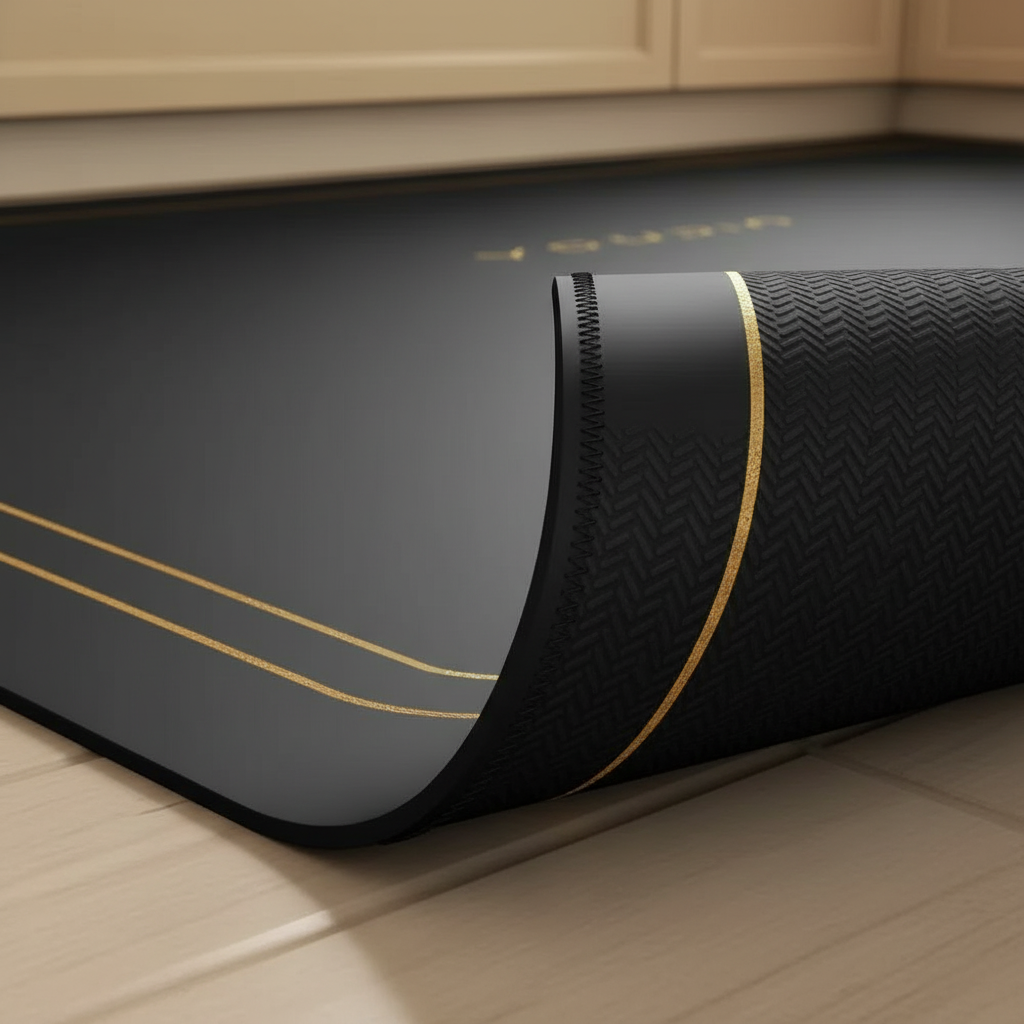 Tapis Cuisine Noir motif doré antidérapant : Élégance et Confort au Quotidien
