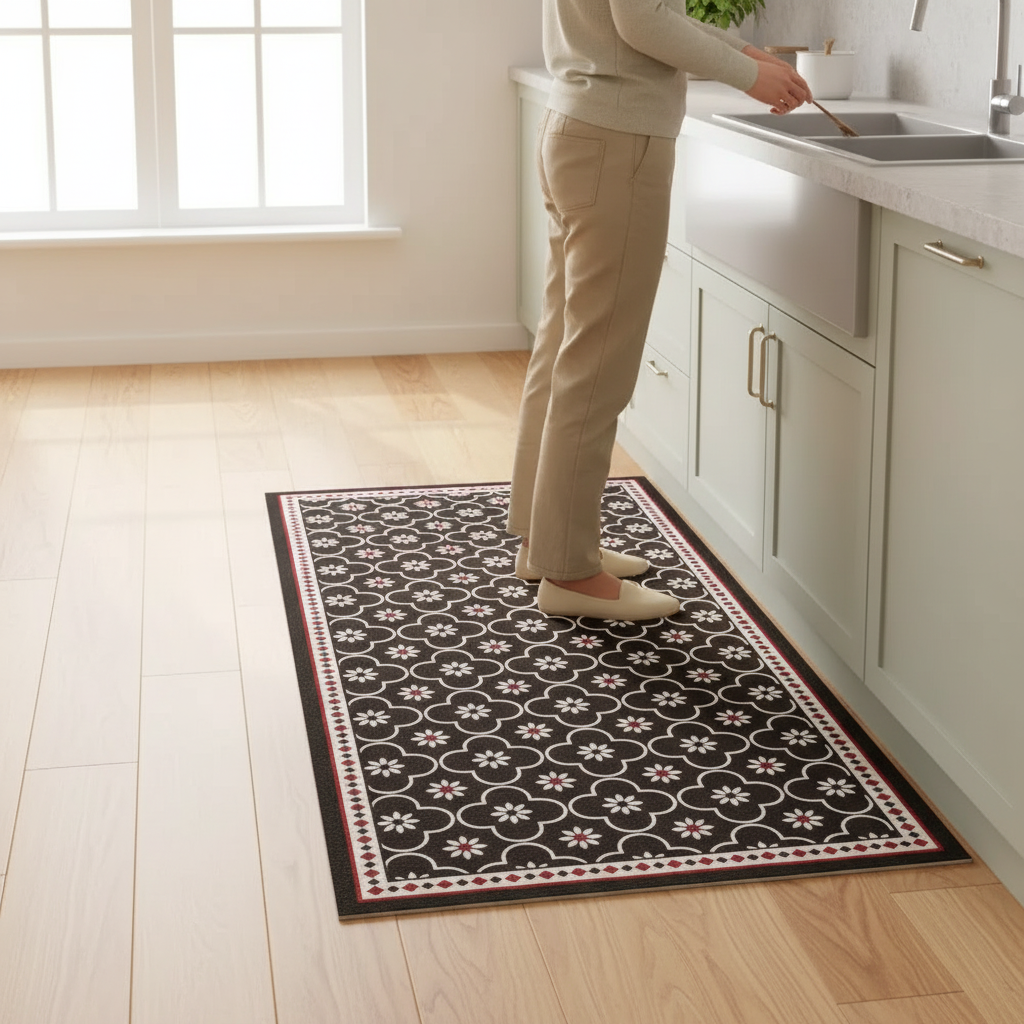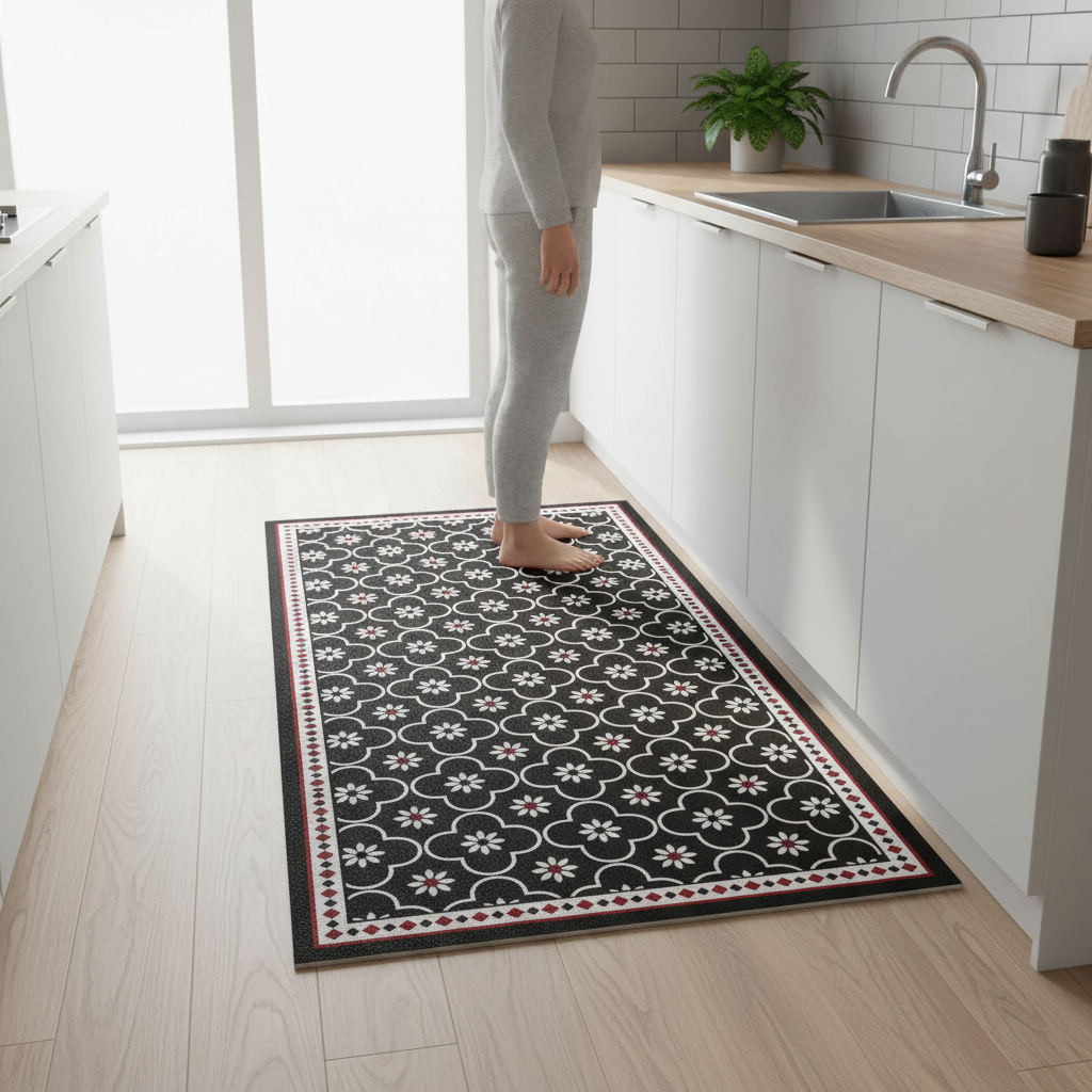 Découvrez la qualité et le design de notre Tapis Cuisine noir motif floral lavable. Parfait pour protéger votre sol, ajouter une touche décorative et profiter d’un confort optimal au quotidien dans votre cuisine.