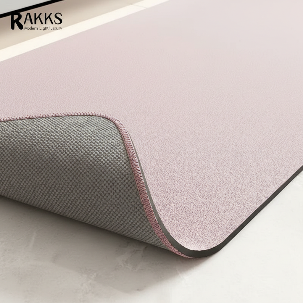 Ajoutez une touche de douceur et de sécurité à votre cuisine avec ce tapis rose poudré.