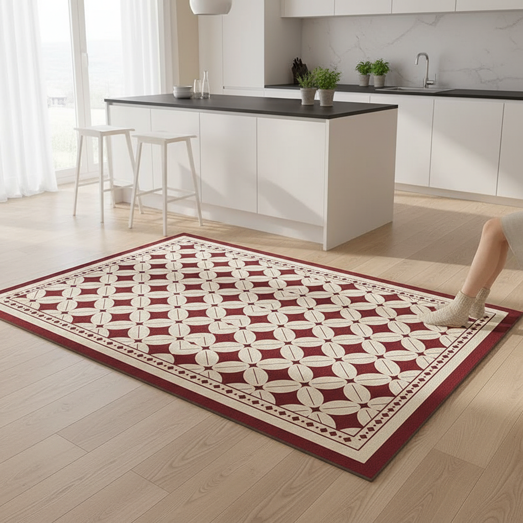 - Entretenez votre Tapis Cuisine Rouge Beige Géométrique Imperméable en le nettoyant facilement avec une éponge humide ou un lavage doux, puis laissez-le sécher à l’air libre. Cette routine simple permet de préserver ses couleurs, sa texture et sa durabilité, même après une utilisation quotidienne dans la cuisine.
