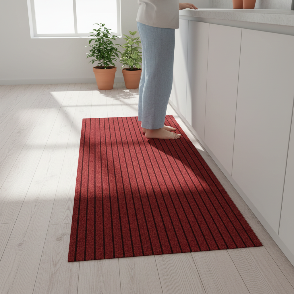 Apportez une touche de couleur et de sécurité à votre cuisine avec ce tapis rouge rayé.