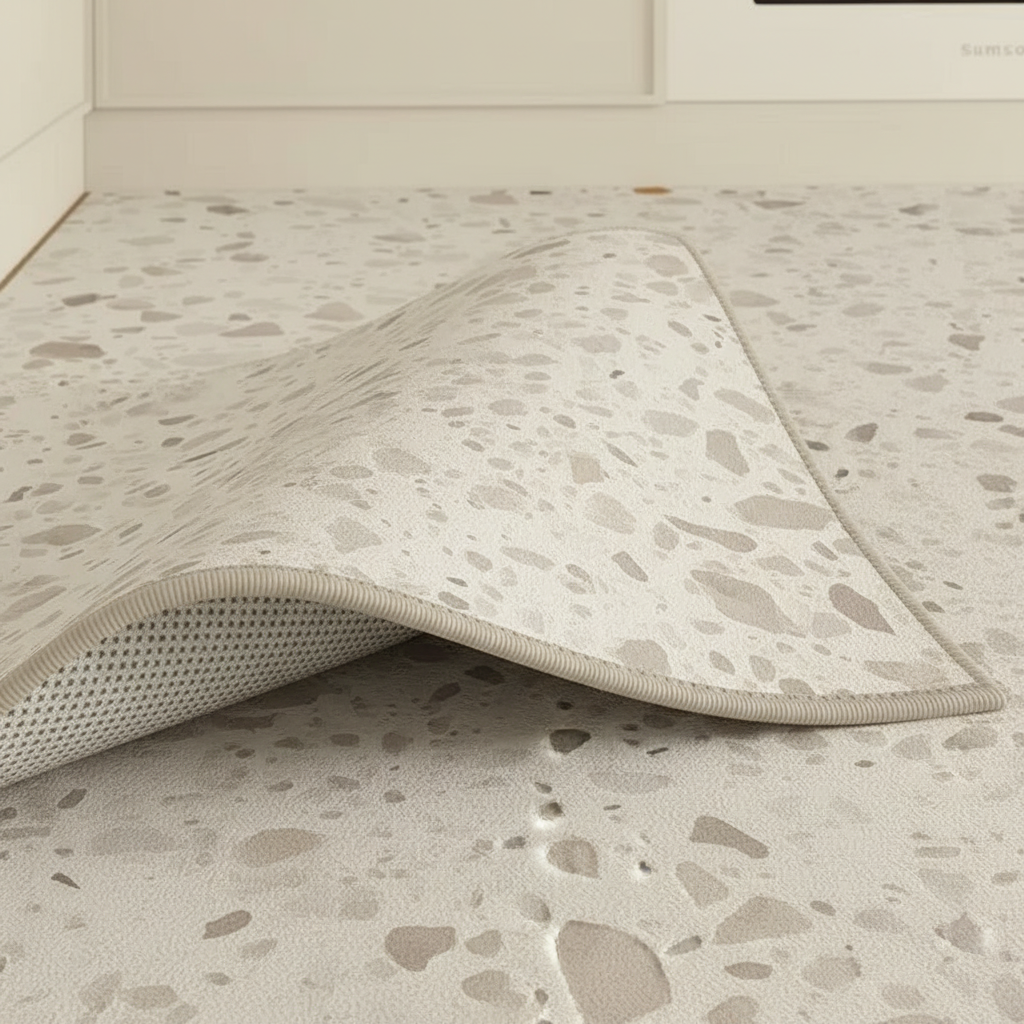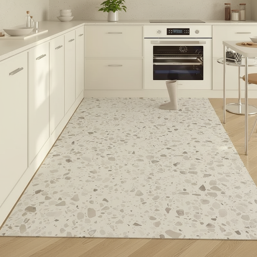 Tapis Cuisine terrazzo gris clair antidérapant : Style et Sécurité au Quotidien