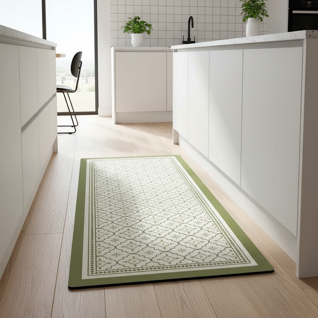 Tapis Cuisine vert motif antidérapant : l'élégance fonctionnelle pour votre espace culinaire