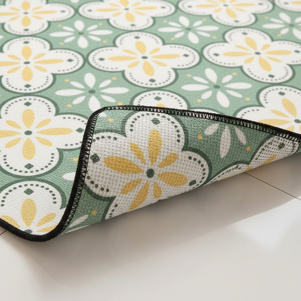 Usage et avantages du Tapis Cuisine vert motif floral anti-tache